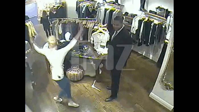 If it were anyone else, it would be both fun and funny ... but in Amanda's case it's desperate. You see her inside Pookie & Sebastian browsing the racks before busting into some wild dance moves.