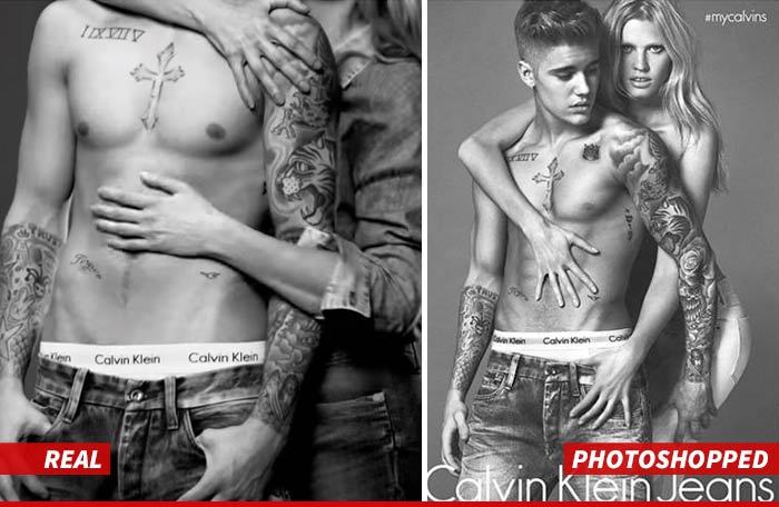 It's ironic ... CK is trying to make Biebs look more like a man, after being slammed for years for using hairless, nubile young models.