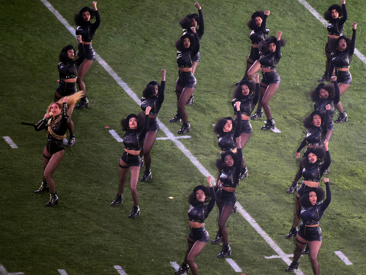 Beyonce made a stirring political statement during the Super Bowl halftime show, in what appears to be a tribute to the Black Panthers, a '60s group that advocated violence to correct racial injustice.