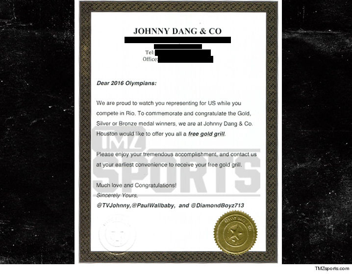 File Under: "Perks of Being a Winner" ... 'cause EVERY. SINGLE. AMERICAN ATHLETE who won a medal in Rio is being offered a FREE gold grill ... courtesy of rapper Paul Wall.