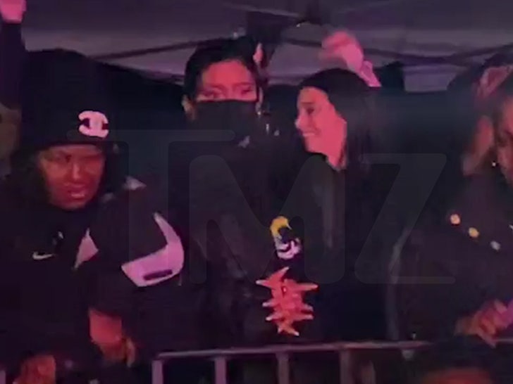 The guy starts to panic, telling her to go back down, but she holds firm ... insisting he get the word out that something was going on down below. A young man joins her to shout the same warning. Meanwhile, you can hear what sounds like Travis Scott continuing to perform.
