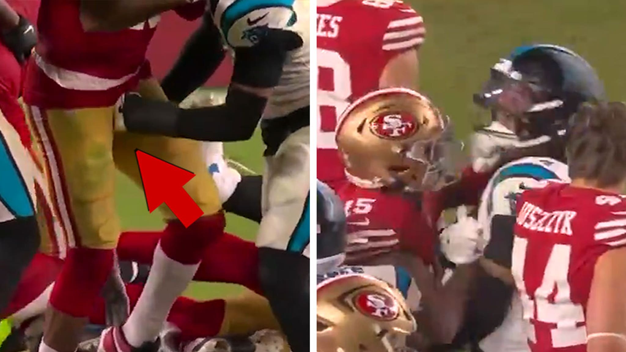 The attack below the belt went down late in the Niners' 20-9 victory over the Carolina Panthers on primetime ... when Jennings and defensive back Tre'von Moehrig were in each other's faces amid the action.
