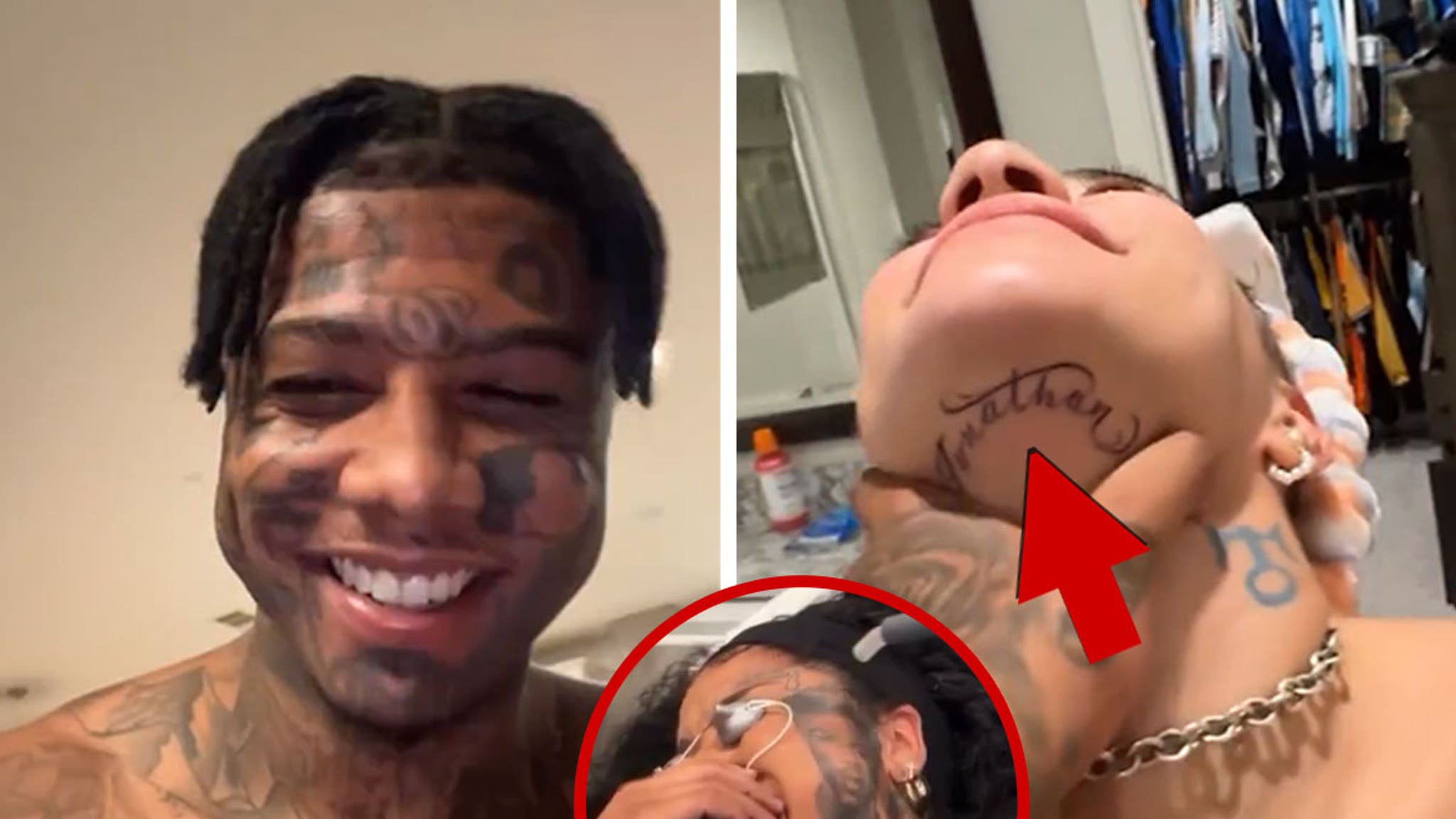 Blueface Shows Off New GF's Face Tat as Chrisean Lasers Away Hers