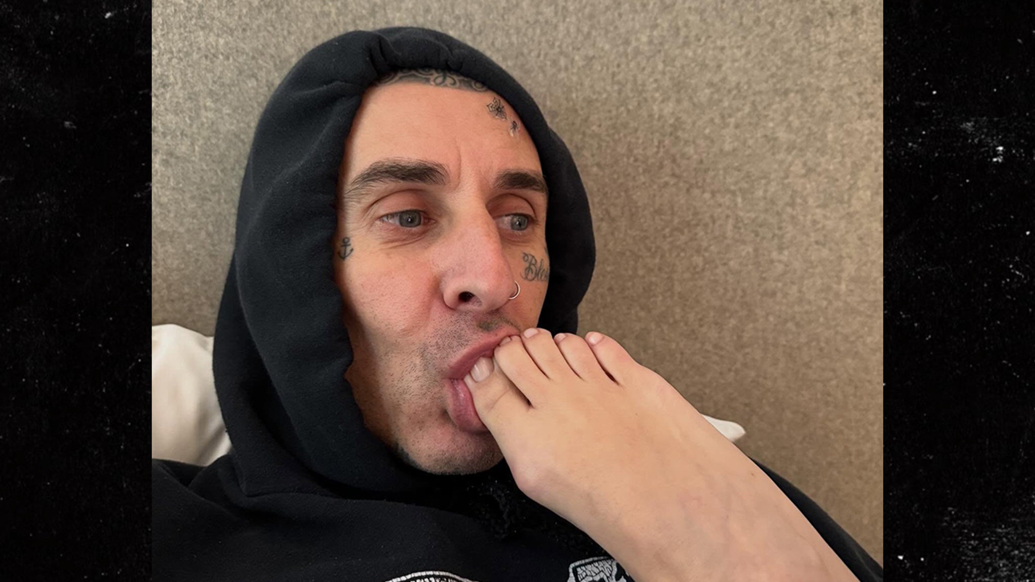 Yeah, you read that right -- Travis posted a close-up of Kourtney’s toes fully in his mouth, going all in on what appears to be a foot fetish with zero shame.
